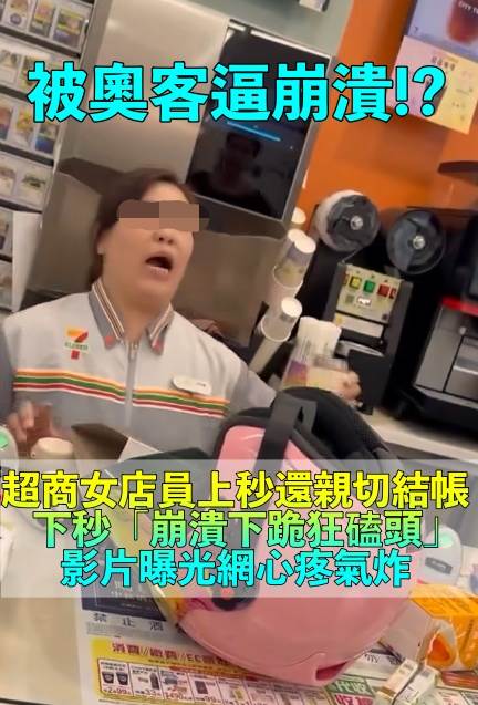 「好,來啊,妳說說看,我到底罵了妳什麼?」這樣的逼問讓原本維持專業態度服務其他客人的的女店員終于崩潰,情緒瀕臨極限的女店員,竟在收銀台內直接跪地,不斷向對方磕頭道歉,一邊哭喊著「對不起、對不起,全都是我的錯!」。