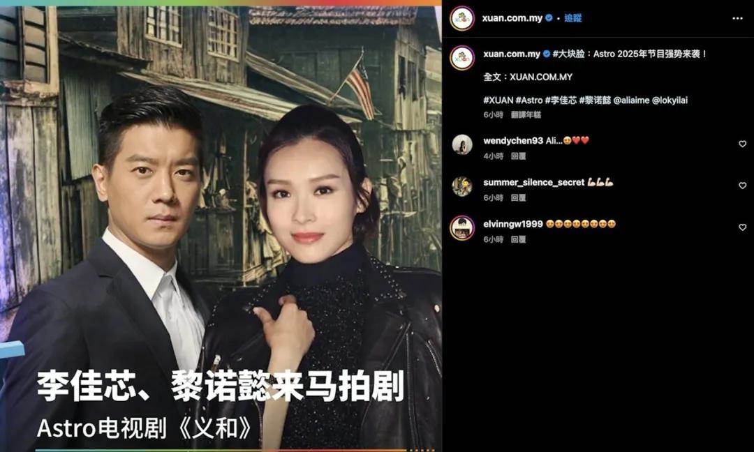 日前馬來西亞「Astro 2025年節目強勢來襲」公布李佳芯將與好拍檔黎諾懿合作黑幫劇《義和》。她透露將于6月底赴大馬拍攝,有很多細節仍要商討,但有諾懿在會安心些,畢竟是她離巢后首次接拍外劇,想嘗試跟多些不同團隊合作。