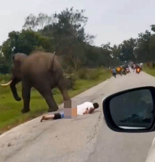盡管從截圖看當時的場景充滿了戲劇性,但其實也是非常危險的。被激怒的大象不顧一切地想要「報復」,而那位穿著白襯衫的男士則是迫切地想要擺脫可能喪命的厄運。