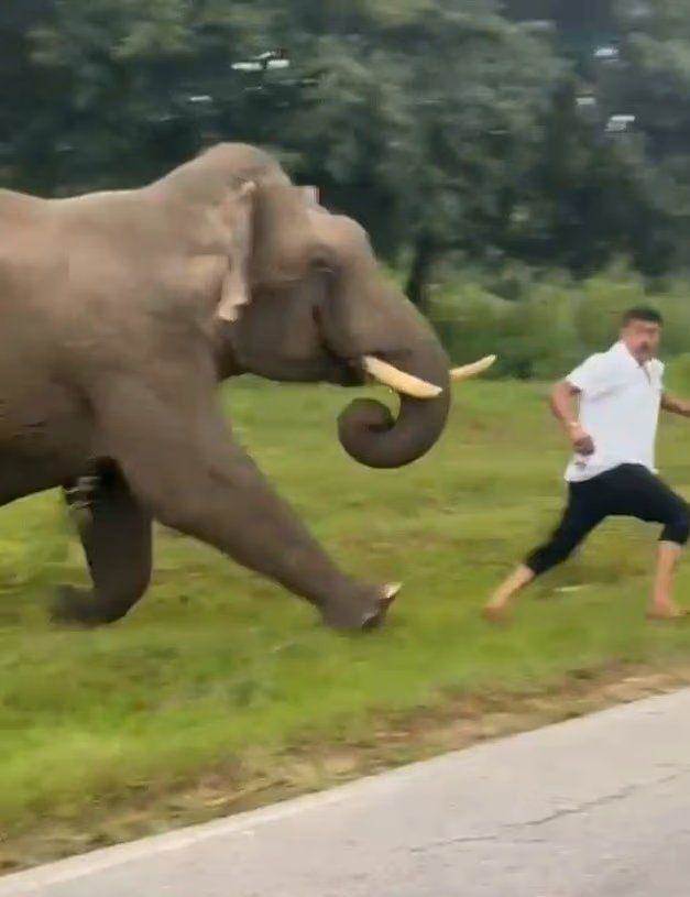 雖然有禁令,但偏偏有人不聽話,比如那位男士。據稱他姓巴薩瓦拉朱(Basavaraju),現年50歲,從卡納塔克邦的南姜古德來到班迪普爾國家公園游玩。