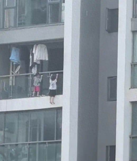 之前就有新聞報道過,兩名幼童都爬到了陽台外側,其中一個孩子更是兩腳懸空,扒著玻璃做起了「引體向上」的動作,視訊拍攝者被嚇得連連驚呼。