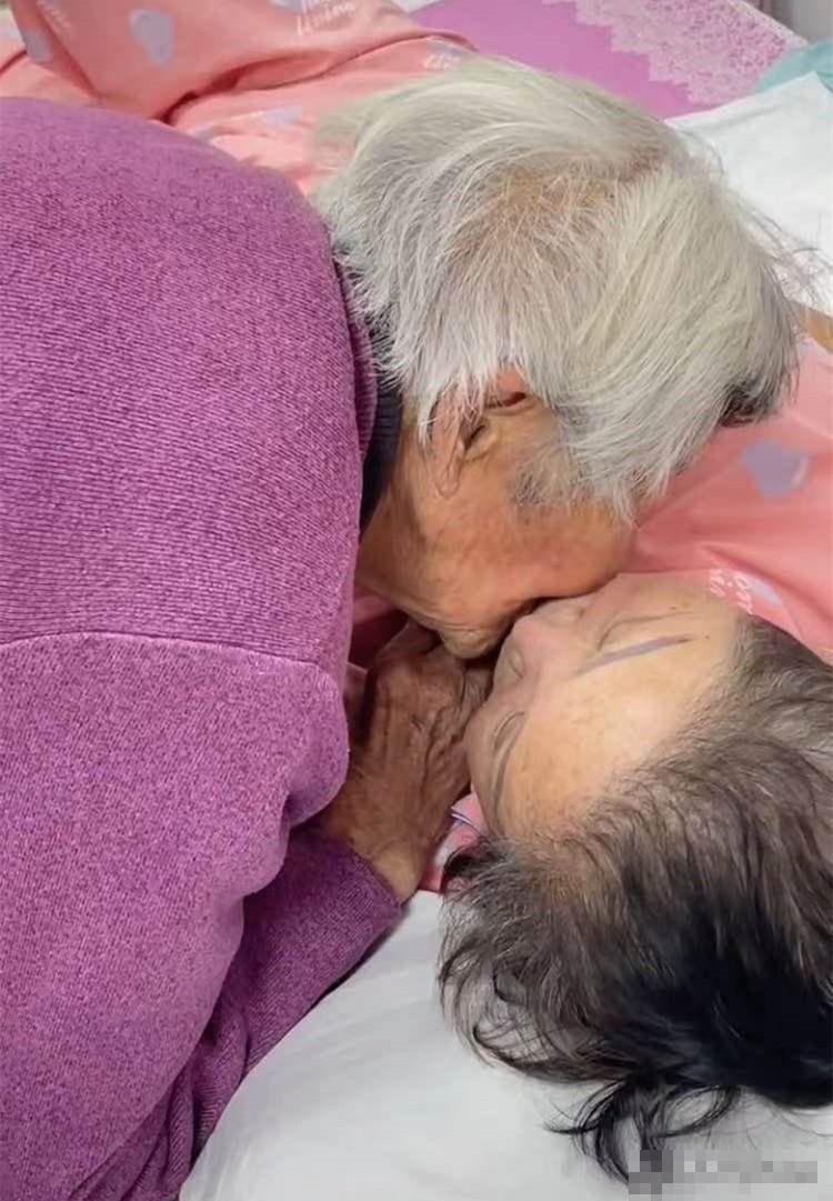 走進病房,步履蹣跚的媽媽扶著床頭,低頭在女兒的耳邊輕聲說:「媽媽來了,知道媽來了嗎?」隨後親吻女兒。