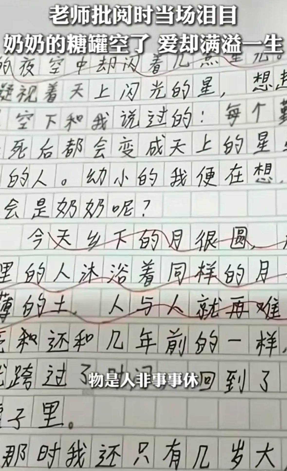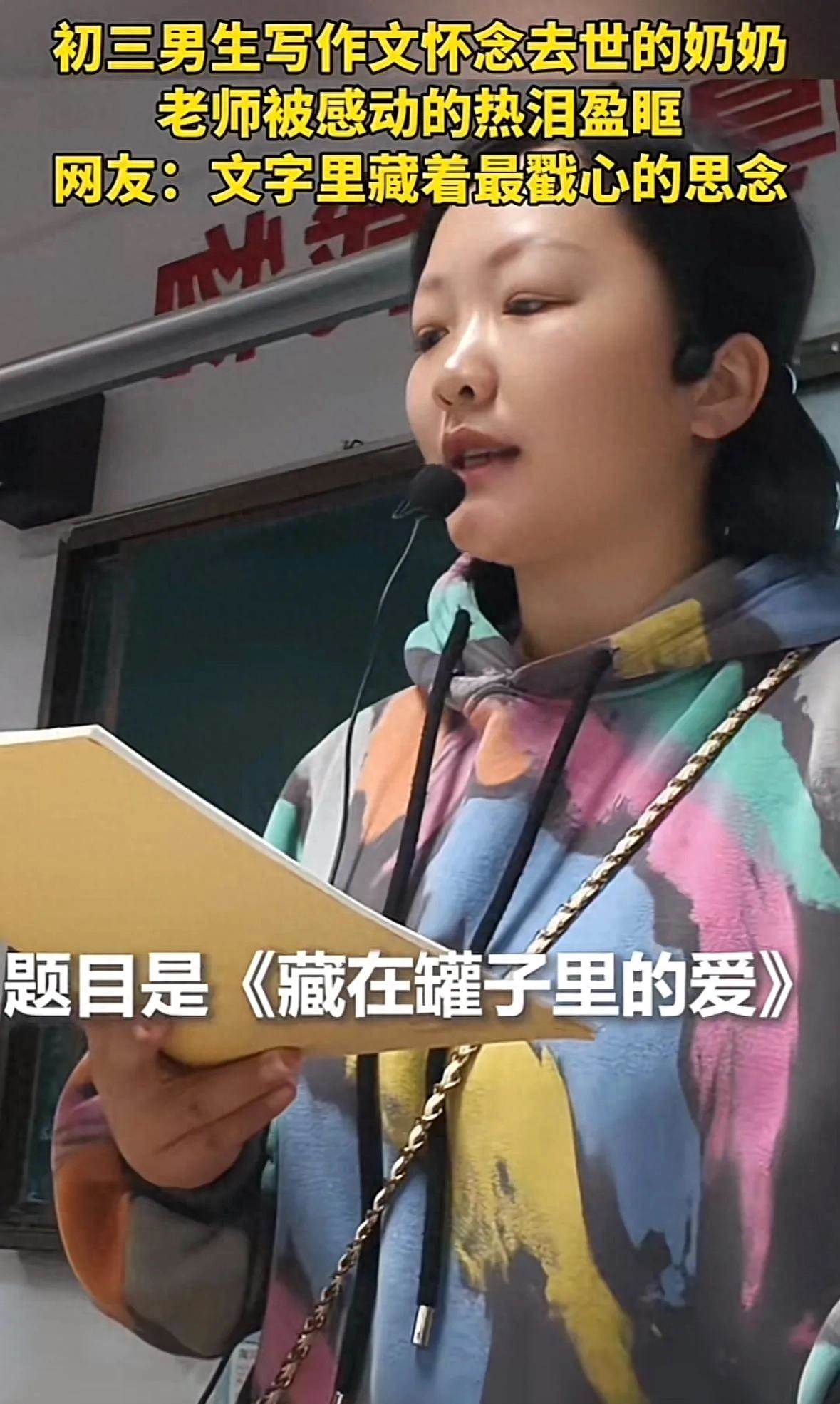 11月4日,湖南婁底,一名學生的作文《藏在罐子裡的愛》,打動了無數人,他沒有華麗的辭藻,也沒有刻意煽情,只是用最樸素的語言。講了一個關于糖罐子和奶奶的故事!卻精準戳中了無數人,心底最柔軟的那一塊。讓老師當場淚目。