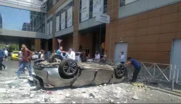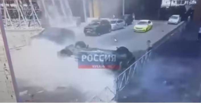根據《TVBS》報導,綜合外媒指出,俄羅斯發生一起4死交通事故,事發地點是卡斯洛達市(Krasnodar)一間購物中心的停車場,一輛BMW轎車從3樓停車場衝破護欄墜地,轎車車頂朝下墜地,現場散落一地殘骸,血跡從車內流出,畫面相當震撼。