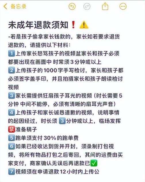 這位賣家不僅拒絕輕易退款,還發來一份自己編輯的,所謂的「未成年退款須知」。