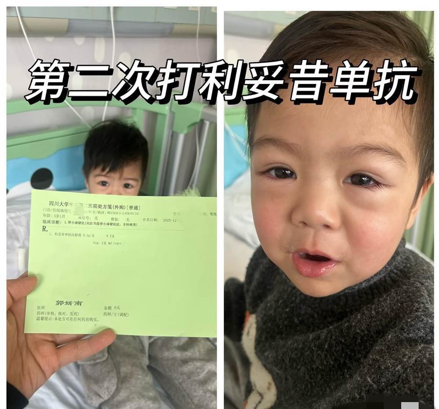 推文的家長描述,孩子才2歲就確診了腎病,一個明顯的癥狀是 「經常眼睛都是腫的」 。為了明確診斷,幼小的孩子已經承受了腎穿刺檢查。然而,治療之路異常坎坷,關鍵指標連續半年都降不下去,不用尿蛋白下不來一直腫,這讓家長陷入了巨大的焦慮與無助:「孩子未來的路真是害怕擔憂」。在痛苦的敘述中,家長發出了兩個沉重的疑問:一是普遍性的困惑,「