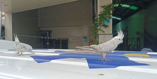 ▼陳家長子飼養在2樓陽台的一對鸚鵡逃過火劫。