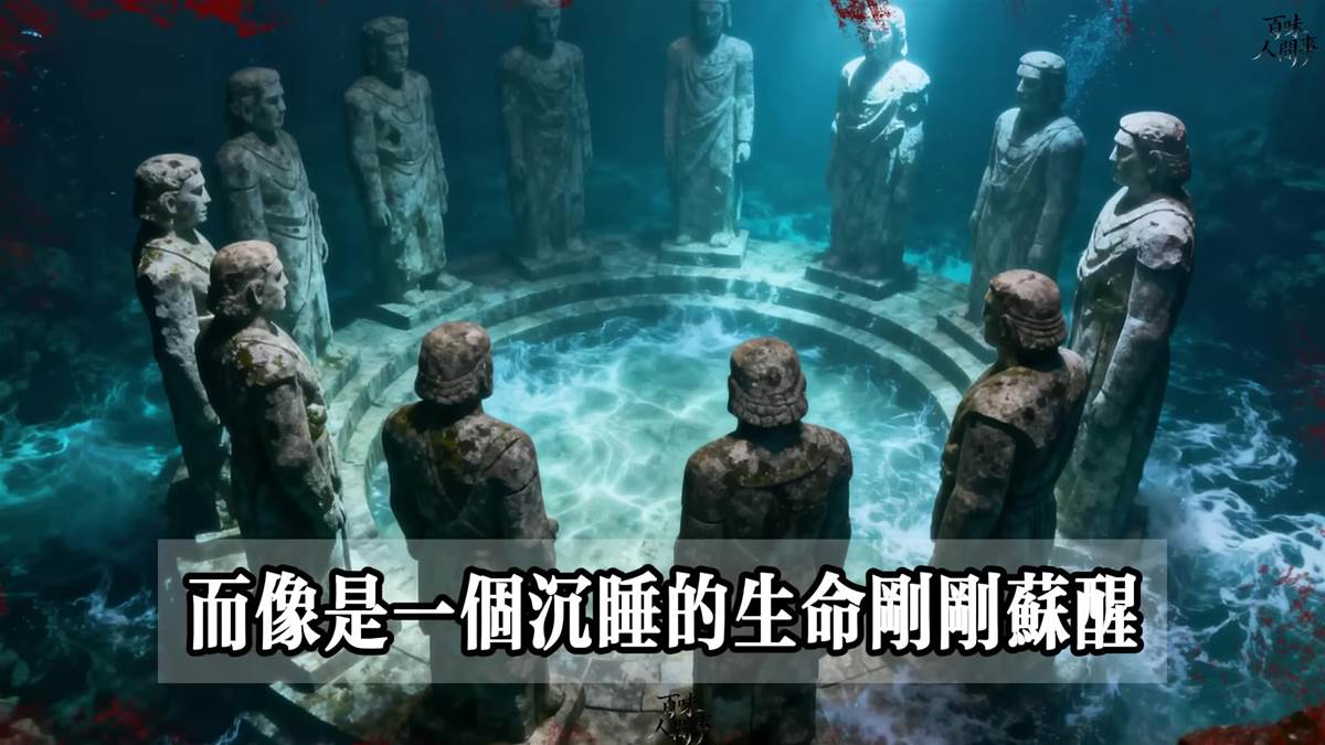 時間來到第四天,午夜11:40,陳建紅一人獨自下潛。他感受到了異常,當光束劃過祭壇中央的螺旋銘文時,那些雕像竟然緩緩動了起來!他親眼看到,那12尊高達3米的深海守衛,之前靜止的「石像」,如今竟如活物般「滑行」。周圍水流劇烈翻涌,水壓宛如一雙無形的手,在水深45米的黑暗中死死扼住他的喉嚨。