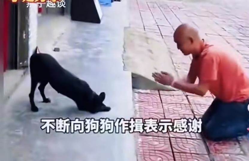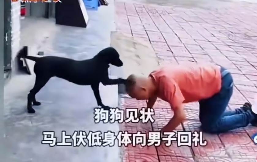 令人動容的是,面對跪拜,黑狗沒有躲閃,反而上前用腦袋蹭他的胳膊,還抬起前爪輕拍他的肩膀,彷彿在安慰「不用謝」。這一幕被路人拍下傳到網上,迅速引發熱議。網友紛紛留言:「投喂之恩,狗狗用命來還」「萬物有靈,這只黑狗太有靈性了」「善有善報,這緣分必須鎖死」。
