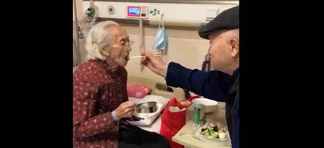 護理師直言「他們兩個感覺就是現在年輕人的一種榜樣,大家都在想著執手到老的那種感情,兩人年齡也都90歲了,我覺得特別不容易」。