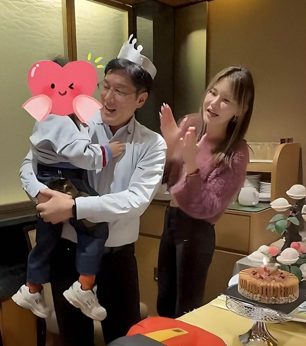 蛋糕更是高調到沒邊兒。一輛紅色法拉利模型,旁邊立著一家六口,外加鐘睿心與前夫所生兒子的卡通玩偶。