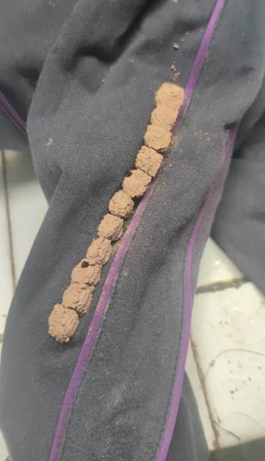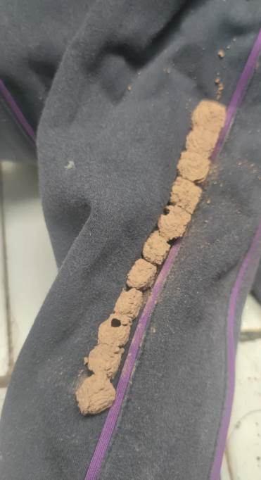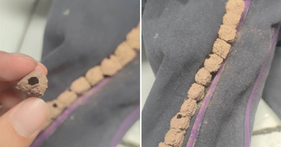 一名網友就在小紅書上驚恐向大家詢問,她表示自己目前住在學校宿舍,衣服洗好了就直接晾在戶外陽台,不過前幾天發現自己的運動褲上長了一串奇怪的泥土小球,四四方方像是小骰子的大小,其中一顆上面還疑似開了小洞,讓原PO害怕大喊:「有人知道這是什麼嗎?是什麼動物的巢穴嗎?」