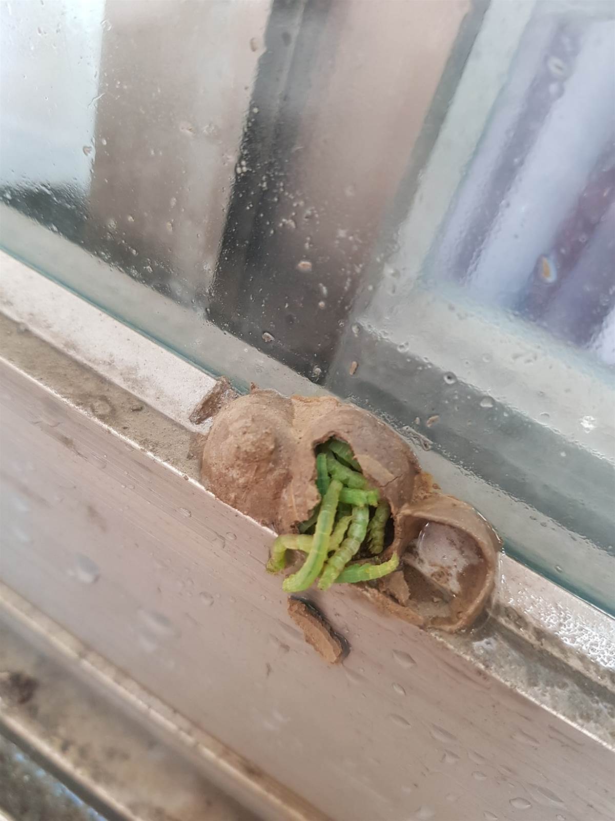 有網友一看就表示:「這是泥蜂築的巢,找個野外放生褲子吧」專家指出泥蜂 (Mud Dauber Wasp) 是一種細腰蜂,牠們常會用泥土在牆角、屋檐或牆壁等地築巢,獵捕蜘蛛等生物帶回巢內並在其體內產卵,等到幼蟲孵化後會從內部把獵物吃掉,最後鑽出獵物身體開始在外頭狩獵。