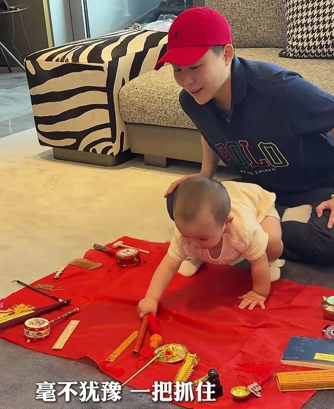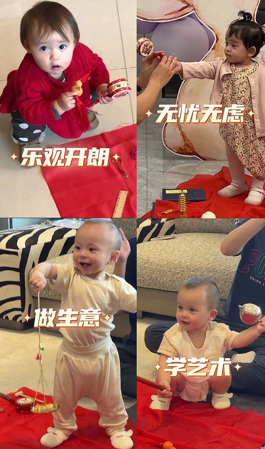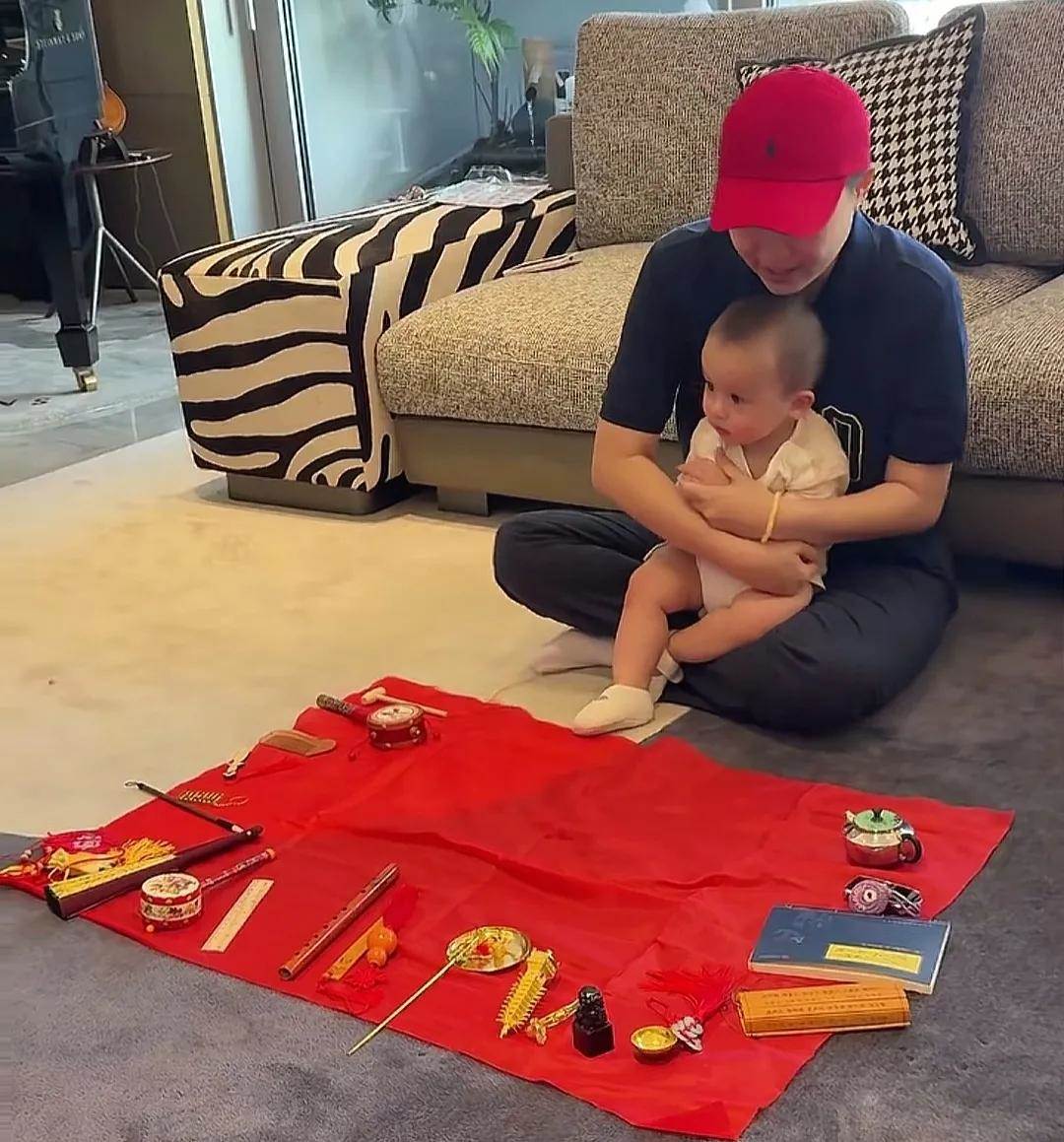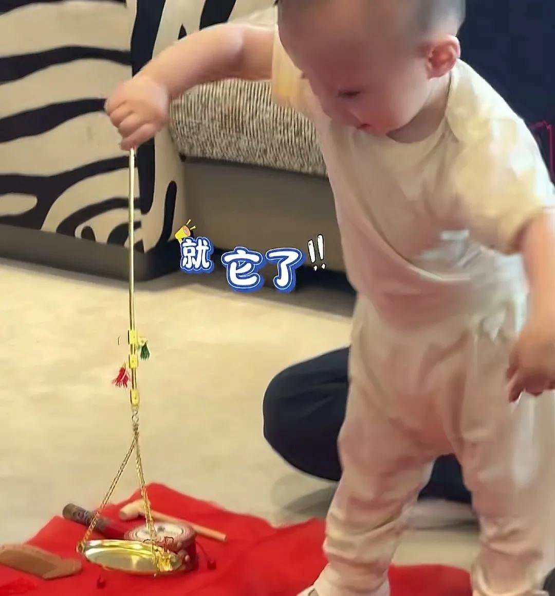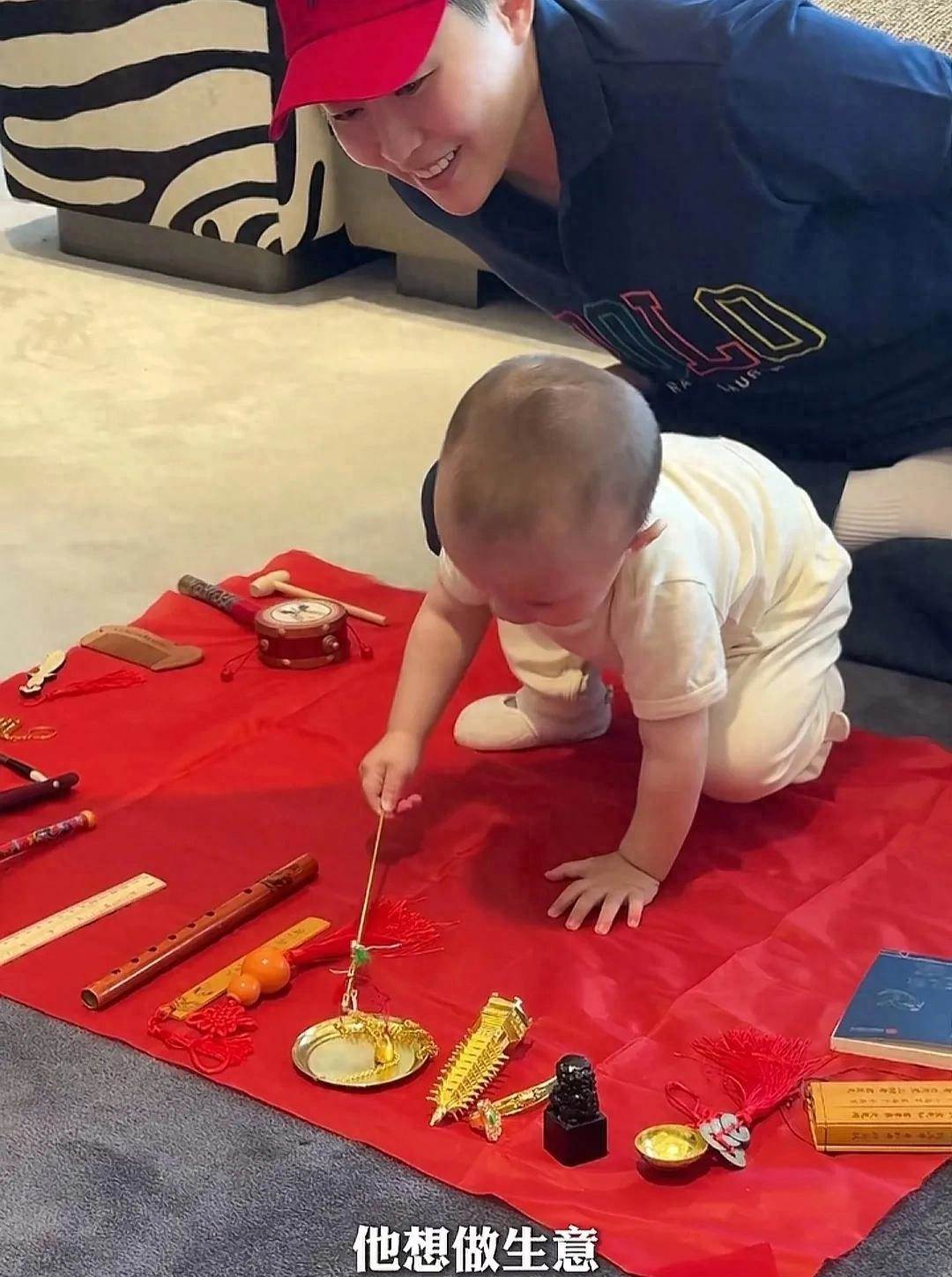 媽媽葉海洋給小哥倆準備了抓周活動。抓周是中國傳統民俗,充滿了對孩子未來的美好期許。