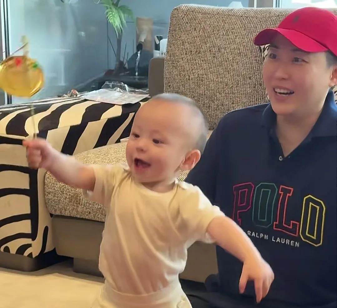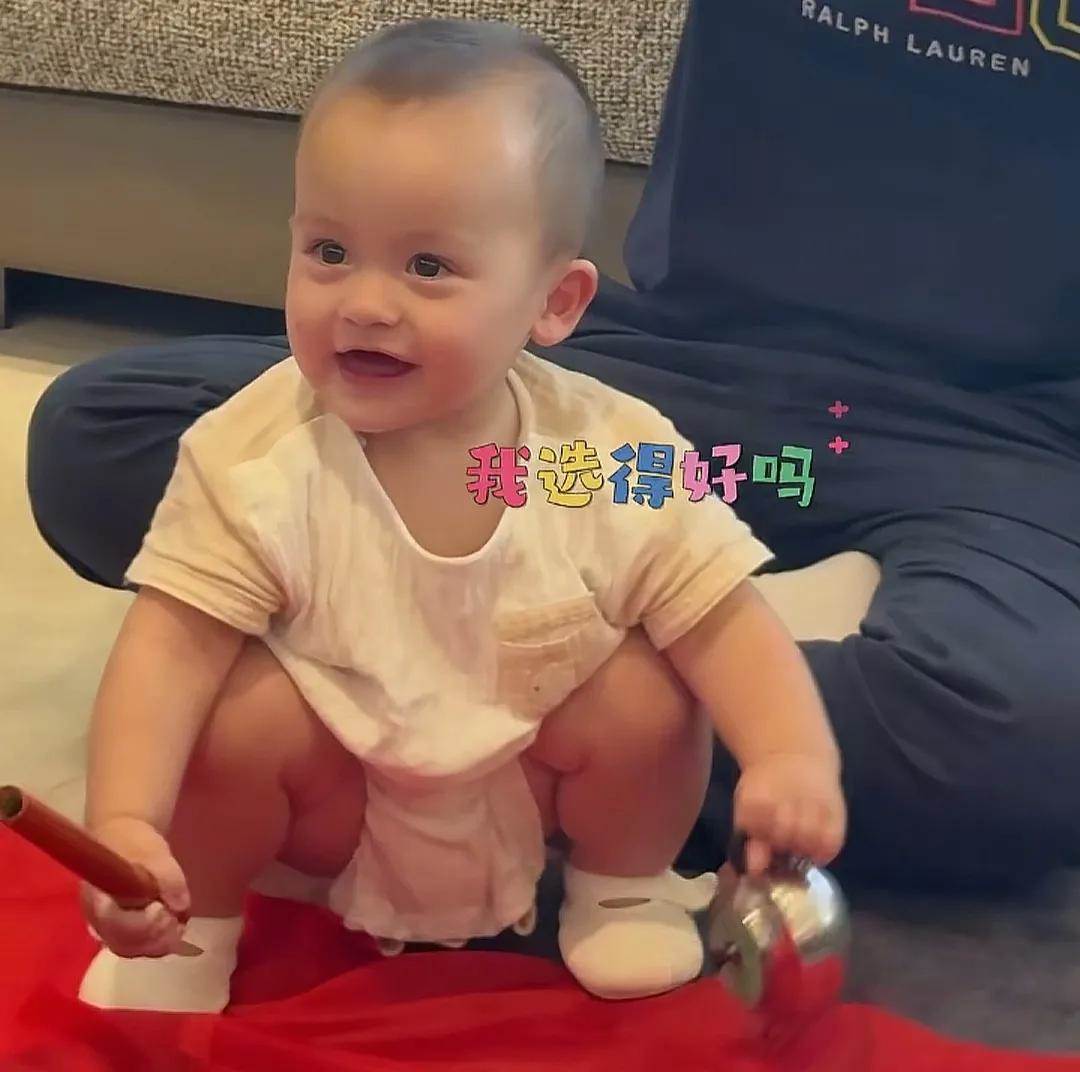 哈提她抓了個啥呢?撥浪鼓,哈哈哈,跟姐姐一樣,不愧是跟著姐姐來這個家的。