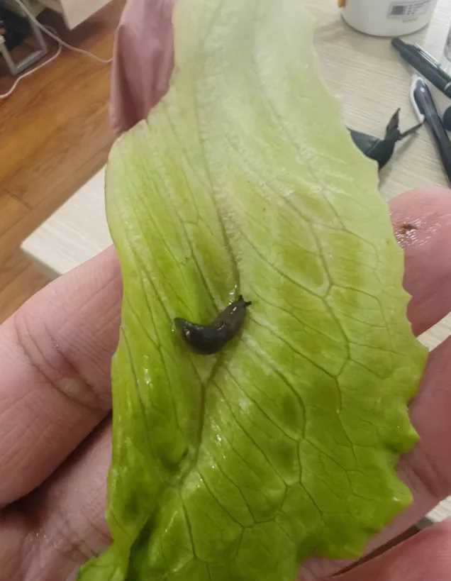 店裡人氣挺旺,我們點了滿滿一桌子肉和蔬菜,正吃得熱火朝天,準備夾點蔬菜解膩時,我突然在生菜葉上看到了一個黑色的東西。 一開始我還以為是蔬菜沒洗乾淨,沾了什麼髒東西,仔細一看,我瞬間頭皮發麻 —— 那竟然是一條活生生的鼻涕蟲!它正蜷縮在生菜葉上,黑乎乎的樣子看得我胃裡一陣翻湧,剛才吃的烤肉差點都要吐出來。