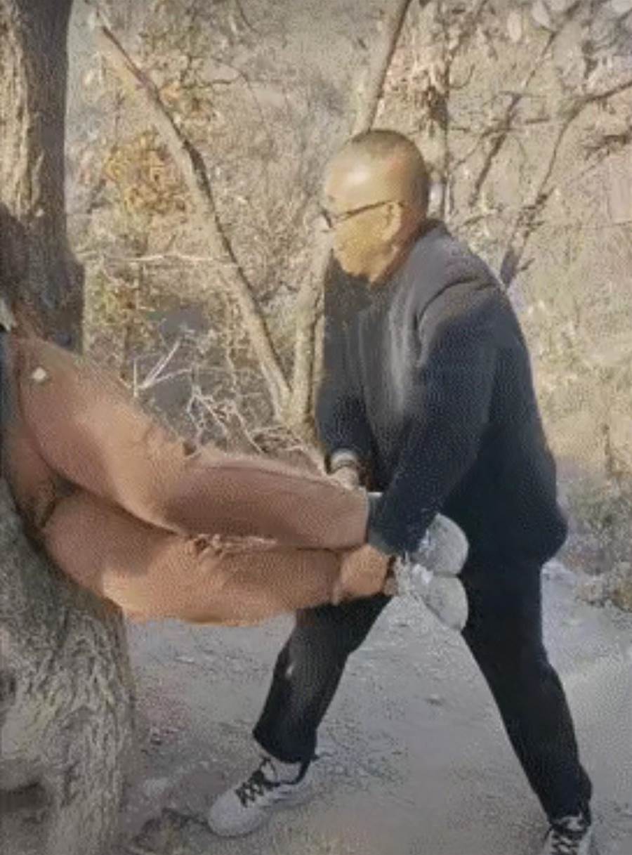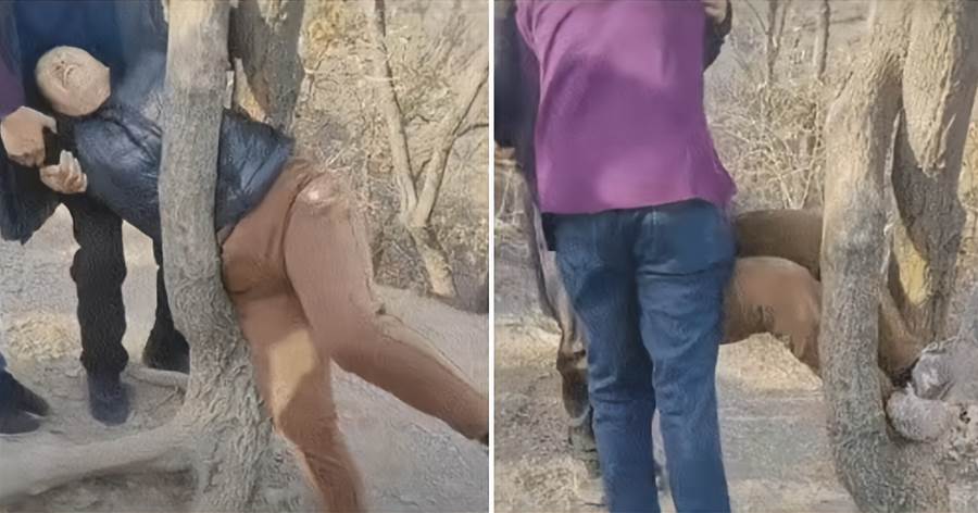 事發時這棵老樹周圍已經有幾位路人駐足,有人好奇打量樹杈間的樹洞,卻沒人敢輕易嘗試鑽進去。可這位大媽路過時,一眼就盯上了這個樹洞,眼神發亮,嘴裡還唸叨著「這洞看著剛好」,不顧身邊路人「別鑽,容易卡」的提醒,執意要進去「探一探」。起初她還小心翼翼地試探,可剛把上半身探進去,腰部就被樹洞狹窄處死死卡住,既退不出來也進不去,整個人懸在樹杈間動彈不得。大家這才更疑惑:這樹洞看著平平無奇,為啥大媽會如此著迷?