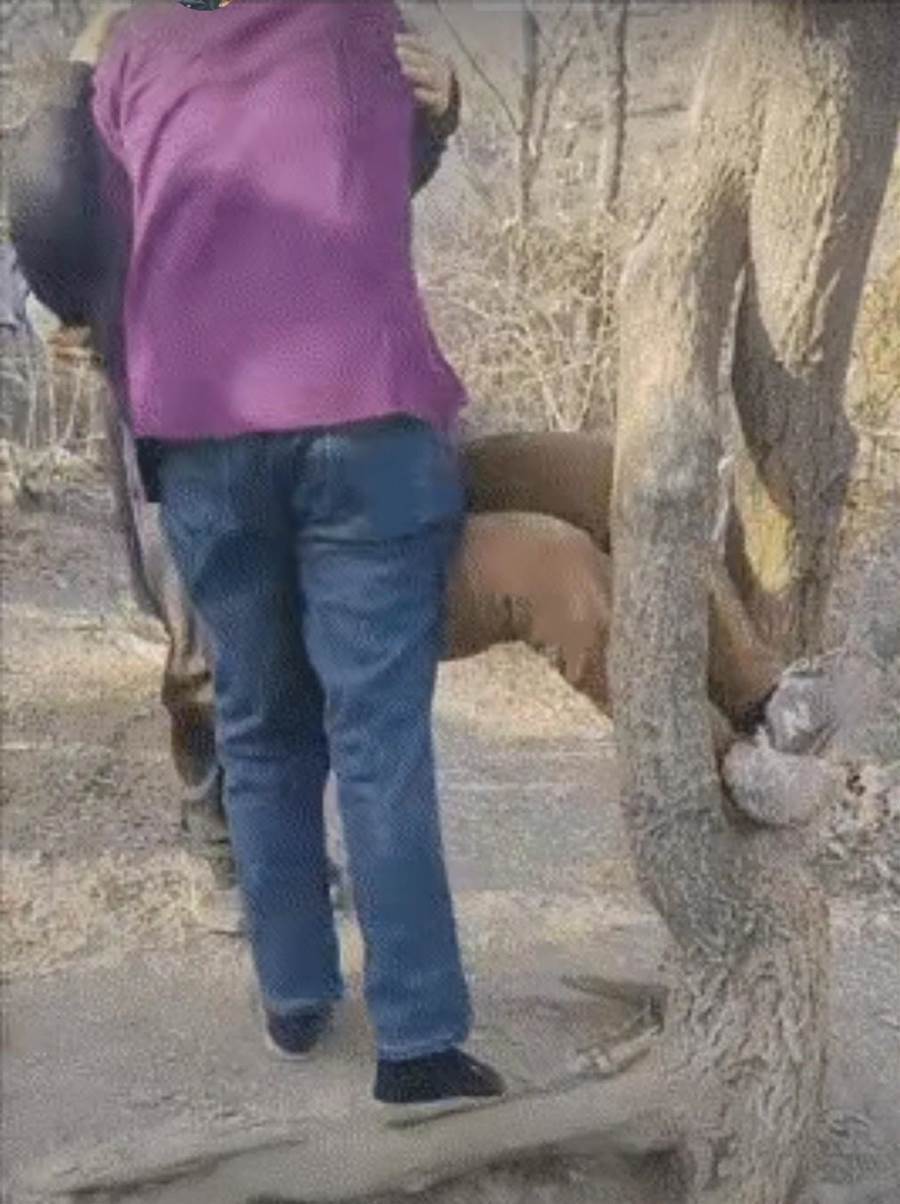 就在這時,三位路過的熱心大哥見狀立刻上前搭手。三人分工明確:兩人穩穩扶住大媽的胳膊和腰部,避免她因掙扎受傷;一人則扶住樹幹,防止救援時樹幹晃動加劇危險。「慢點慢點,別使勁,我們幫你調整角度!」大哥們一邊輕聲安撫,一邊小心翼翼地調整大媽的姿勢,慢慢發力向外託舉。